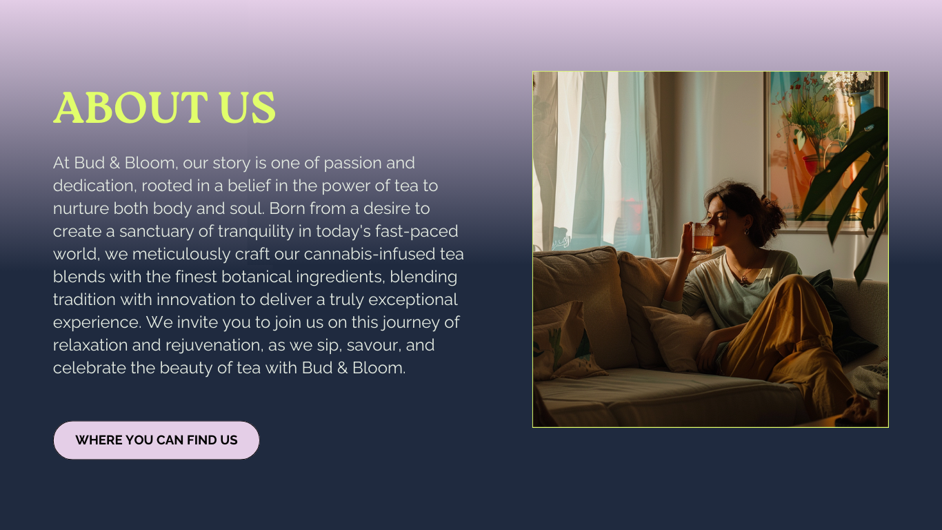 Bud & Bloom specializes in cannabis-infused tea blends crafted to enhance relaxation. With a focus on quality ingredients and thoughtful infusion techniques, each blend offers a harmonious fusion of flavor and therapeutic benefits. Explore Bud & Bloom for a journey of tranquility, where every sip invites peace and rejuvenation.